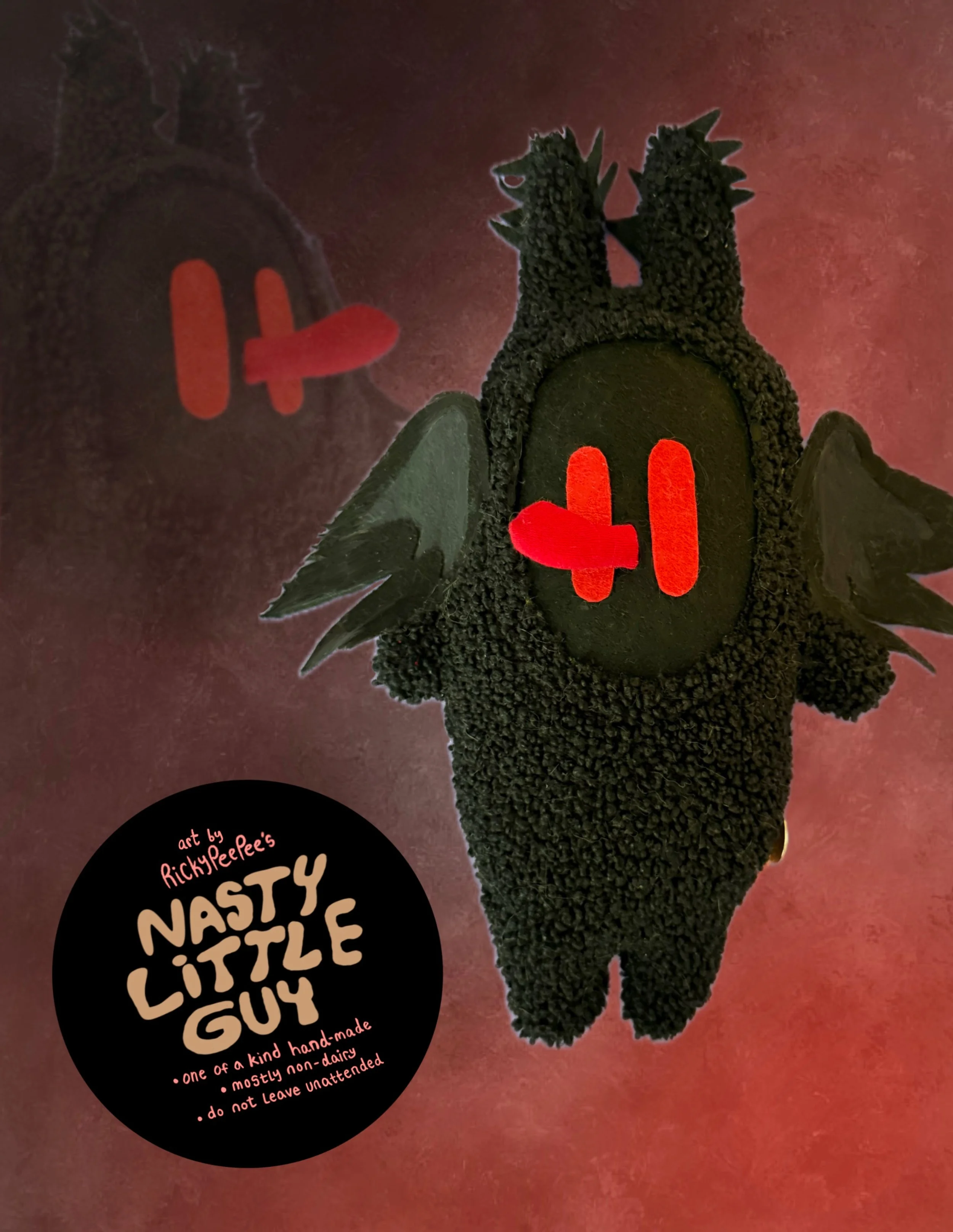 Image 1 of 1 Nasty Little Guy (Moth Man) Plush $70.00 sold out One of a kind hand-made, mostly non-dairy, do not leave unattended.10” Tall Multi Media Sold Out Added! One of a kind hand-made, mostly non-dairy, do not leave unattended.10” Tall Multi Media